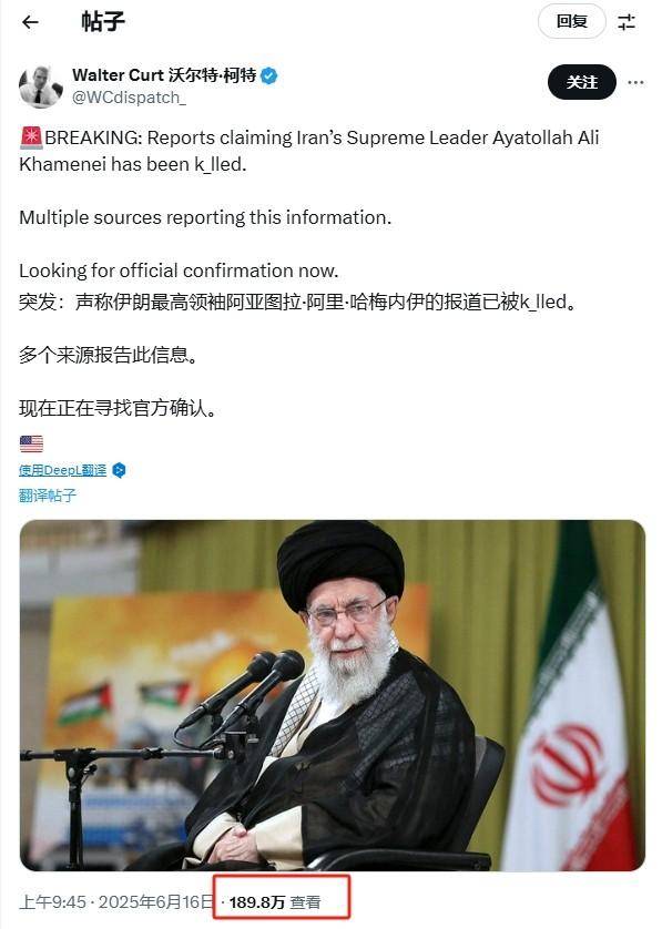 外网传得沸沸扬扬的哈梅内伊已经“遇刺”,其实是假新闻